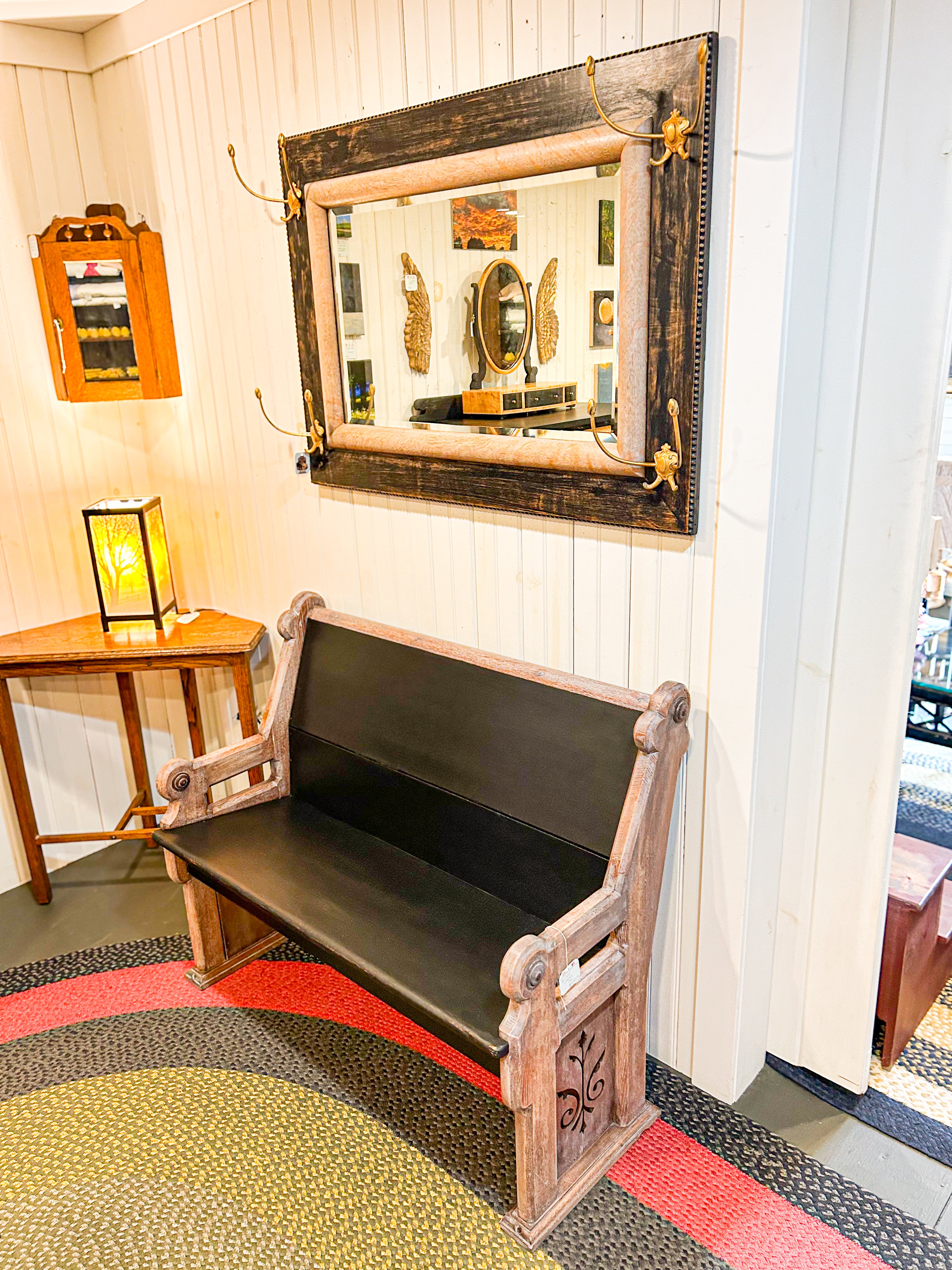 Stop by the shop to see some of the ingenious creations including a custom pantry from a general store screen door, a table from an 1840s grist wheel belt wheel, a kitchen bar from a 1700s woodworker’s bench and many other reposed architectural elements.